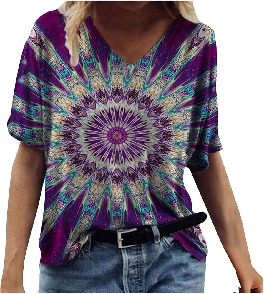 Womens Summer Tops 2023 Casual Dressy Short Sleeve V Neck T Shirts