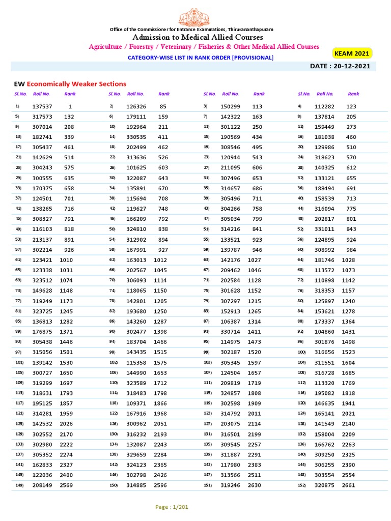 Keam Rank List 2024 Pdf – The Revised Final Rank list does not entitle him/her for admission to the courses, unless he/she satisfies all the eligibility conditions for admission to the courses as prescribed in the KEAM . TNEA Rank List 2023 Out On tneaonline.org – Check Complete Details Tags: TNEA Rank List 2023 TNEA 2023 Rank List TNEA 2023 .